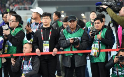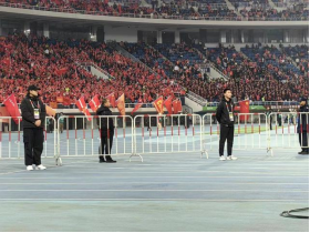 赛场内的学生志愿者🦯🏌🏿‍♀️,按照组委会工作人员要求💴,快速到位,站立昂首挺胸,精神十足🦻🏿,隔离带拉得笔直,有效协助维护了赛场内的采访秩序。