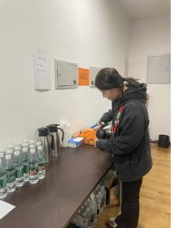 体职院的30名志愿者按照岗位分成两组,一组在赛场内拉隔离带、维护赛场采访秩序,一组在新闻发布厅、媒体看台区、混合采访区🫰🏼、餐饮区负责首发名单的接收与传递、储物柜管理𓀌、设备检查🤫、秩序引导、收发物资、机动协调等工作🧍‍♂️。