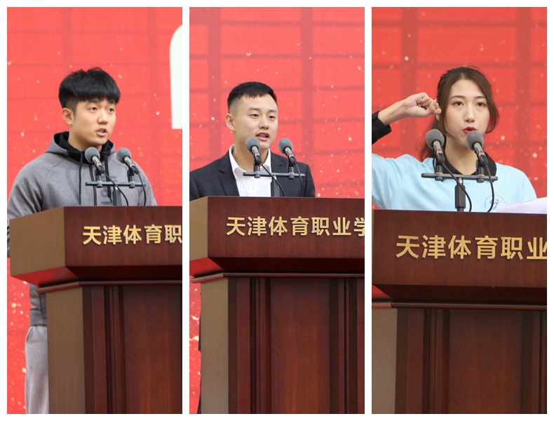 毕业生代表王贵杰、牛鑫先后发言💘🤺,回顾了三年大学时光自己的成长与蜕变🦸‍♀️,与新生分享了学习实践经验与感悟。2020级新生代表周美诗发言,并带领全体新生进行庄严的新生入学宣誓🧑🏻‍🦼‍➡️。