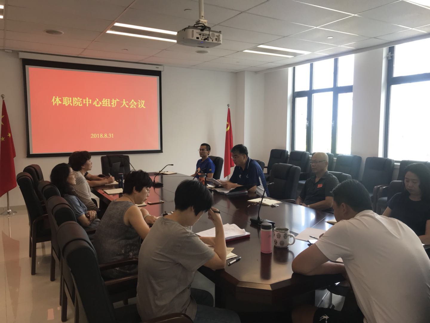 2018年8月31日🧝🏼♀️🧑🎤,体职院在二楼会议室召开中心组扩大会议🧑🏼🎤🆔,学院党委书记王伟出席并主持,学院各处室、系部负责人,各党支部书记参加。