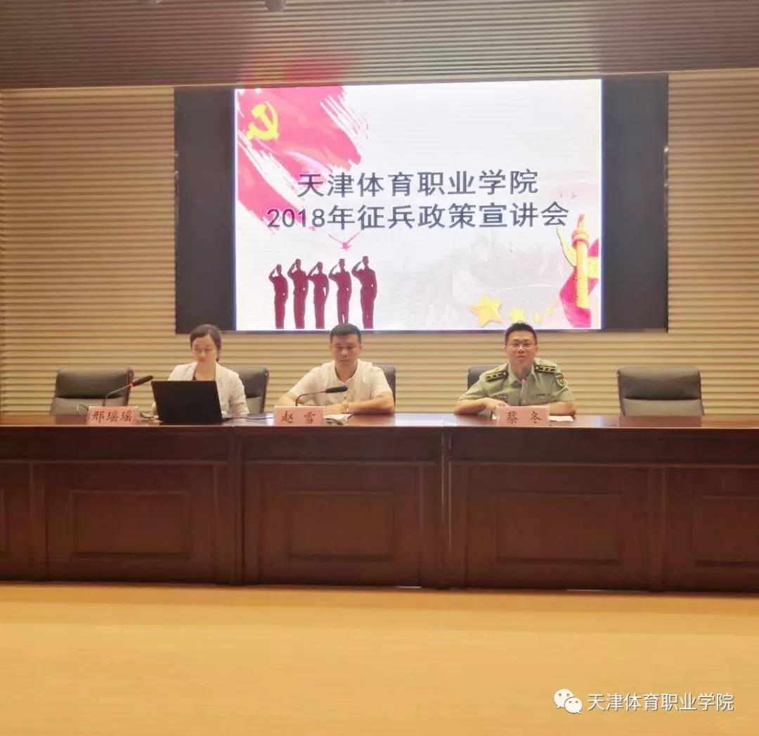 为全面贯彻党的十九大精神,深入学习习近平总书记给南开大学新入伍大学生回信精神,认真贯彻全国大学生征兵工作网络视频会议要求,进一步落实大学生征兵工作任务🐁,6月22日👨🦽➡️,我院召开2018年大学生征兵政策宣讲会。静海武装部军事科科长蔡冬,学院学生处副处长、征兵办公室主任赵雪、副主任邢瑶瑶出席会议。会议由邢瑶瑶主持。