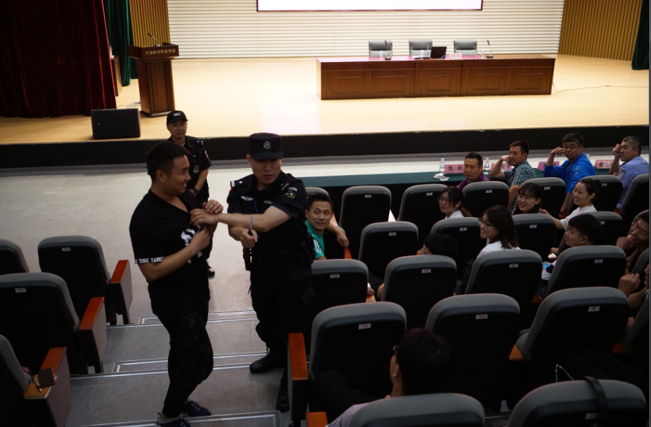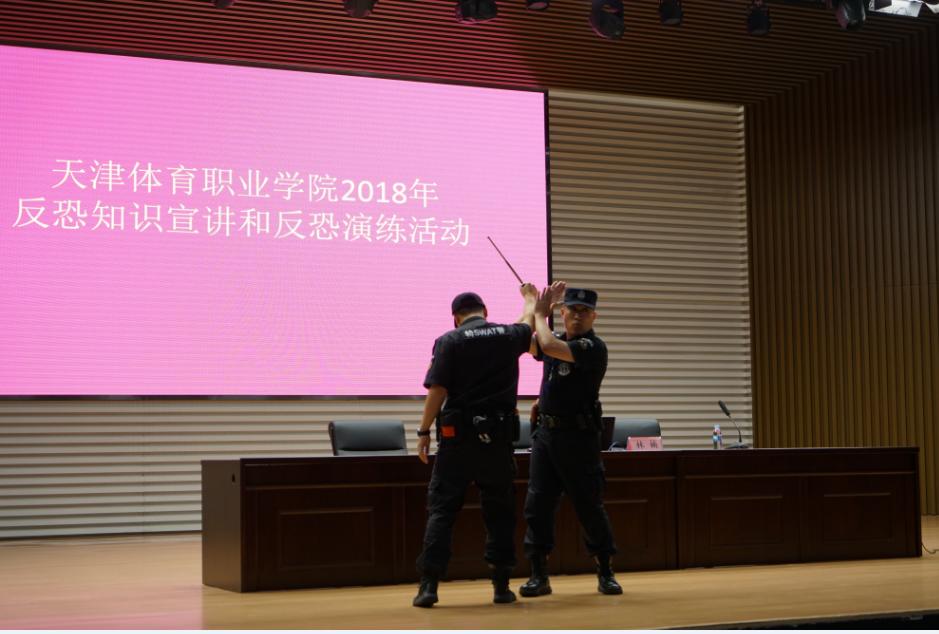 为进一步增强广大师生应对突发暴恐事件的防范意识,提升应对恐怖袭击事件的有效处置能力,确保学校安全稳定⛺️,努力实现“平安校园”的总体目标⛔️,2018年6月13日,彩神Vll学院开展反恐知识宣讲和反恐演练活动,学院党委书记王伟、院长刘钦龙🧆、副院长张毅出席,全院师生、物业工作人员参加。活动邀请了天津市反恐怖工作防范应急支队林楠警官🧇、静海区分局特警支队二大队大队长付雪东警官和民警王明坤为大家进行专业知识宣讲和反恐演练。
