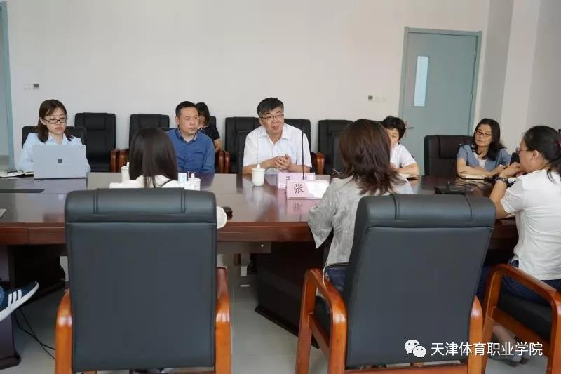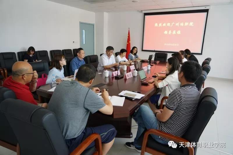 5月30日上午📳,广州体育职业学院来体职院交流✊🏽,两所体职院相关部门在二楼会议室召开交流会,参加人员有广州体职院学生处处长(原教务处处长)张苹、市场营销专业带头人程丹,天津体职院党委书记王伟🚣🏻♂️、副院长张毅📟、各系部负责人。