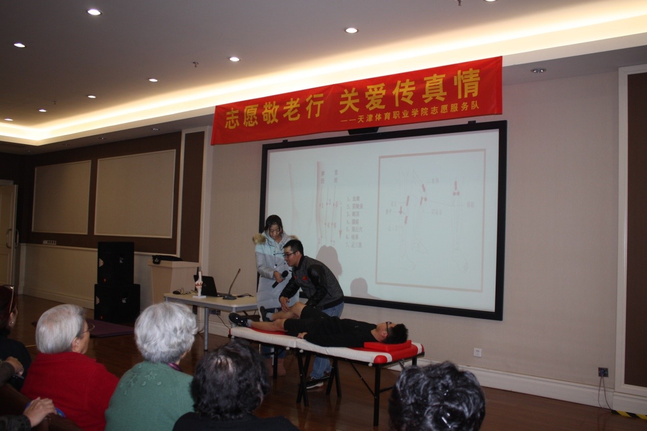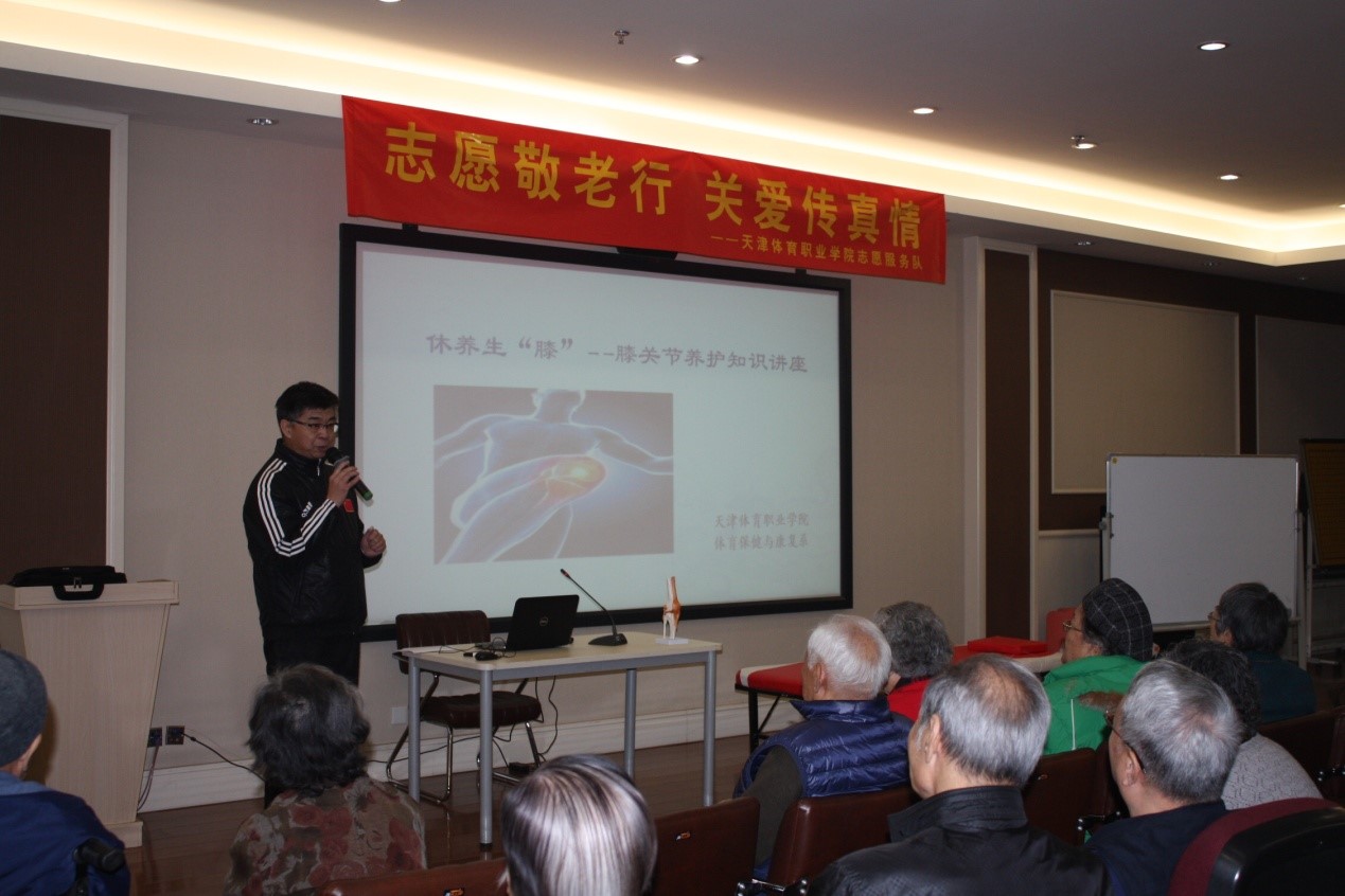 12月3日上午🐼🚵🏿,按照天津市第十一届社区教育展示周🈂️,暨2017年天津市全民终身学习活动周的工作要求,学院领导高度重视🧑🏿🦰,亲自带队并部署工作,经办公室组织协调,体育保健与康复系的师生到位于静海区的康宁津园老年公寓举办《休养生“膝”——老年人膝关节养护知识》主题讲座,为老年人讲解关于膝关节养护知识,带领他们实践操作并解答健康难题☺️。