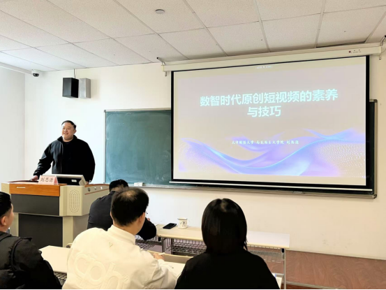为深入学习贯彻党的二十大精神和习近平文化思想,认真落实习近平总书记关于宣传思想文化工作的重要指示和2024年学院宣传文化工作会议精神,提升学院宣传思想工作队伍的专业素养和业务能力,11月6日下午🆓,体职院邀请天津财经大学马克思主义学院硕士生导师⛷、博士刘思源作《数智时代原创短视频的素养与技巧》专题辅导授课☠️,学院分管领导、中层干部、基层党支部书记👨🏼🎤、通讯员🐿、网评员和学生代表参加培训。