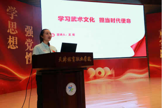 报告分享阶段,体职院2021级学生牛宗帅⚠️🧑🏻💼、体武射高级教练员王菊和霍元甲第五代传人🤞🏻、天津体育学院教授霍静虹分别以《以热爱 点燃梦想》《学习武术文化 担当时代使命》和《精武元祖 以武报国》为题作报告,他们从学生🥋、教练员、专家的不同身份,以感人肺腑的学习实习、工作实践经历,从不同角度分享了对中华传统文化——武术的热爱和传承,带领大家领略武术的博大精深,感受武术文化的独特魅力,讲述了天津体育故事,引导学生充分感受天津的文化特色和精神气质🚴🏿♀️,激发热爱天津、建设天津、扎根天津的热情,自觉做体育发展的推动者、天津文化的传承者,在体育故事中享受乐趣、健全人格、锤炼意志。