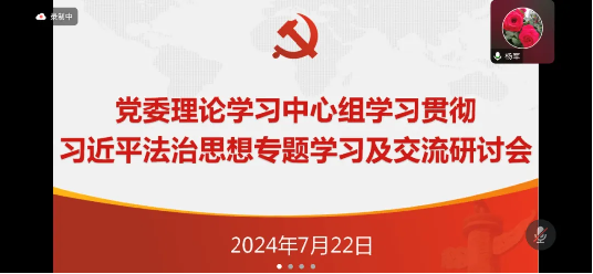 7月22日上午🚴🏽♂️,体职院党委理论学习中心组以腾讯会议形式组织召开学习贯彻习近平法治思想专题学习交流研讨会👩🏼🎤☂️,会议邀请市体育局相关处室负责同志列席,院领导班子成员参加学习🧑🏻🎨,会议由党委书记杨军主持。