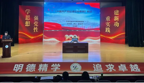 为推进落实中央关于在全党开展党纪学习教育的重大部署,教育引导学院广大党员干部深入学习贯彻《中国共产党纪律处分条例》,始终做到学纪、知纪、明纪、守纪🦸🏿,切实把党纪学习教育成效转化为学院高质量发展成果🧑🏻‍⚖️,结合学院党纪学习教育大讲堂集中学习,体职院邀请市委党校王保彦教授711日莅临学院,对《条例》进行权威宣传解读和政策辅导。学院党政主要负责同志、全体党员干部参加了此次培训,党委委员、副院长潘政彬主持会议。