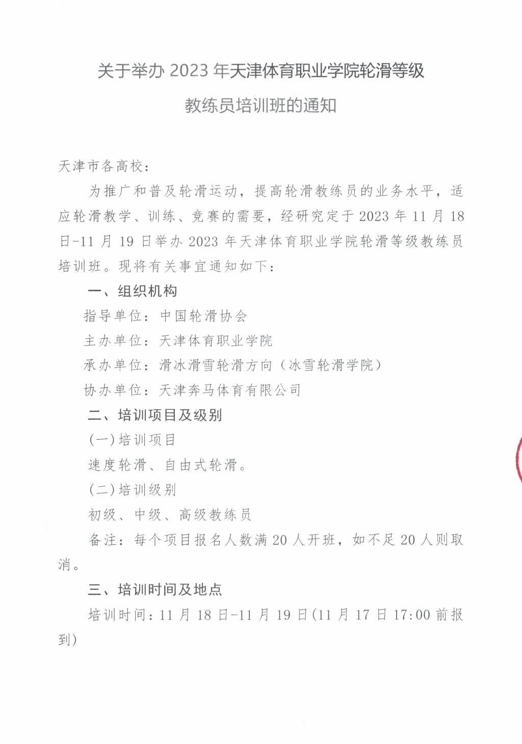 关于举办2023年彩神Vll学院轮滑等级教练员培训班的通知